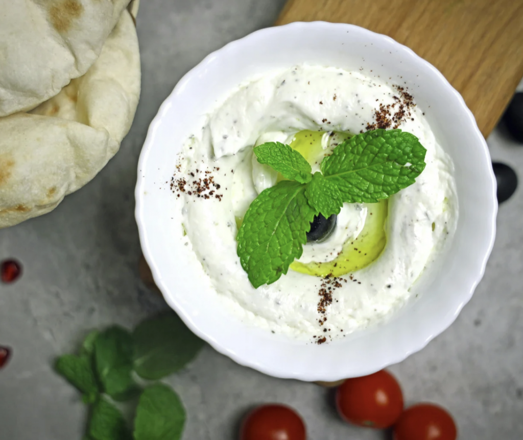 Knoblauch, Zitronensaft, gehackte Minze und optional Petersilie/Dill hinzufügen und alles gut verrühren.